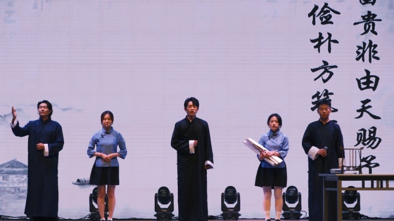 “艺·百花齐放” 篇章则集中展现了学院深厚的美育功底与开阔的艺术视野。这里既有《曾国藩家书》品读带来的文化沉淀与家风滋养,也有流行金曲《爱情转移》带来的时代脉搏。舞蹈《刀马旦》将传统戏曲元素与现代舞美融合,飒爽英姿尽显国潮之美。丁珺老师的独唱《飞》则以极具张力的表演,象征着艺术创作的自由与超越,而合唱《天地龙鳞》则用恢弘的旋律唱响了文化自信的强音,充分体现了美育在传承与创新中的重要作用。