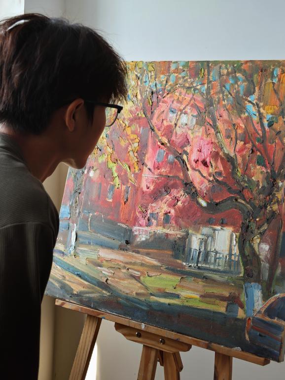 艺术对话,共鸣激发创作灵感。在艺术角布置与观摩过程中,同学们自发交流创作心得。从对艺术形式的探索到对生活点滴的感悟,轻松的讨论拉近了彼此的距离。在场同学表示:“在公寓这个熟悉的空间里与艺术不期而遇,让创作变得亲切而生动。这不仅是作品的展示,更是一次心灵的对话与共鸣。”